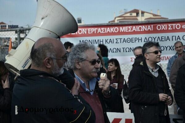 Έξω από το υπουργείο, πολλές εκατοντάδες εκπαιδευτικοί, σε μια μαζική και μαχητική διαδήλωση, περικύκλωσαν ασφυκτικά το χώρο του σεμιναρίου, απέκλεισαν έξω τους επίδοξους αξιολογητές και έδωσαν με αυταπάρνηση και επιτυχία τη μάχη τέσσερις ολόκληρες ώρες σε όλες τις εισόδους του υπουργείου.