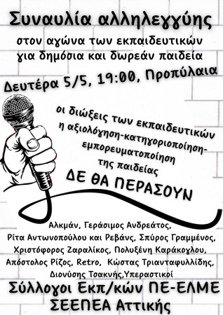 Συναυλία αλληλεγγύης στον αγώνα των εκπαιδευτικών για Δημόσια και Δωρεάν Παιδεία τη Δευτέρα 5/5 19:00 στα Προπύλαια