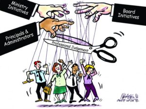 Να σταματήσουμε την εισβολή του νέας κοπής επιθεωρητισμού στην εκπαίδευση (νέες στοχεύσεις, νέο περιεχόμενο και νέες τακτικές στο πλαίσιο των αντιδραστικών αναδιαρθρώσεων για την εκπαίδευση και την εργασία), με ένα παρατεταμένο, πολύμορφο αγώνα με απεργιακά βήματα, κινητοποιήσεις, διαδηλώσεις, καταλήψεις με στόχο την νίκη.