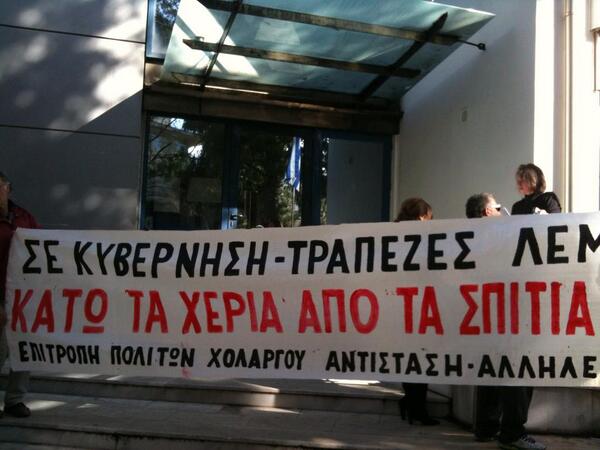 Σήμερα, Τετάρτη 5 Μαρτίου 2014, ακυρώθηκε για πρώτη φορά στην Αθήνα πλειστηριασμός πρώτης κατοικίας, ο οποίος ήταν να πραγματοποιηθεί στο Ειρηνοδικείο Χαλανδρίου λόγω οφειλών στην Τράπεζα Πειραιώς.