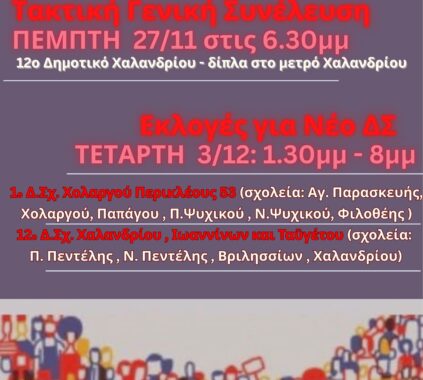 Χαιρετίζουμε τη μαζική συμμετοχή των συναδέλφων/ισσών στις αρχαιρεσίες του συλλόγου μας για την ανάδειξη νέου Δ.Σ. στις 3/12/25.