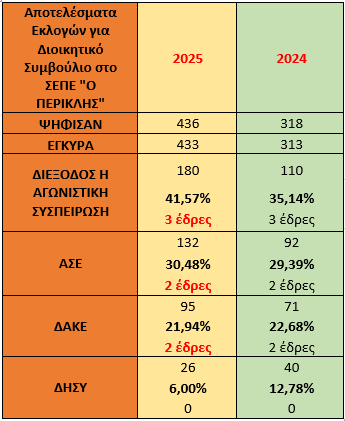 Στον πίνακα που ακολουθεί κοινοποιούμε τα αποτελέσματα των εκλογών από  3/12/25 για την ανάδειξη του νέου Δ.Σ. του Συλλόγου, καθώς και συγκριτικά στοιχεία του 2023.