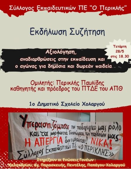 Ο Σύλλογος Εκπαιδευτικών Π.Ε. «Ο Περικλής» καταγγέλλει τη στοχοποίηση από...