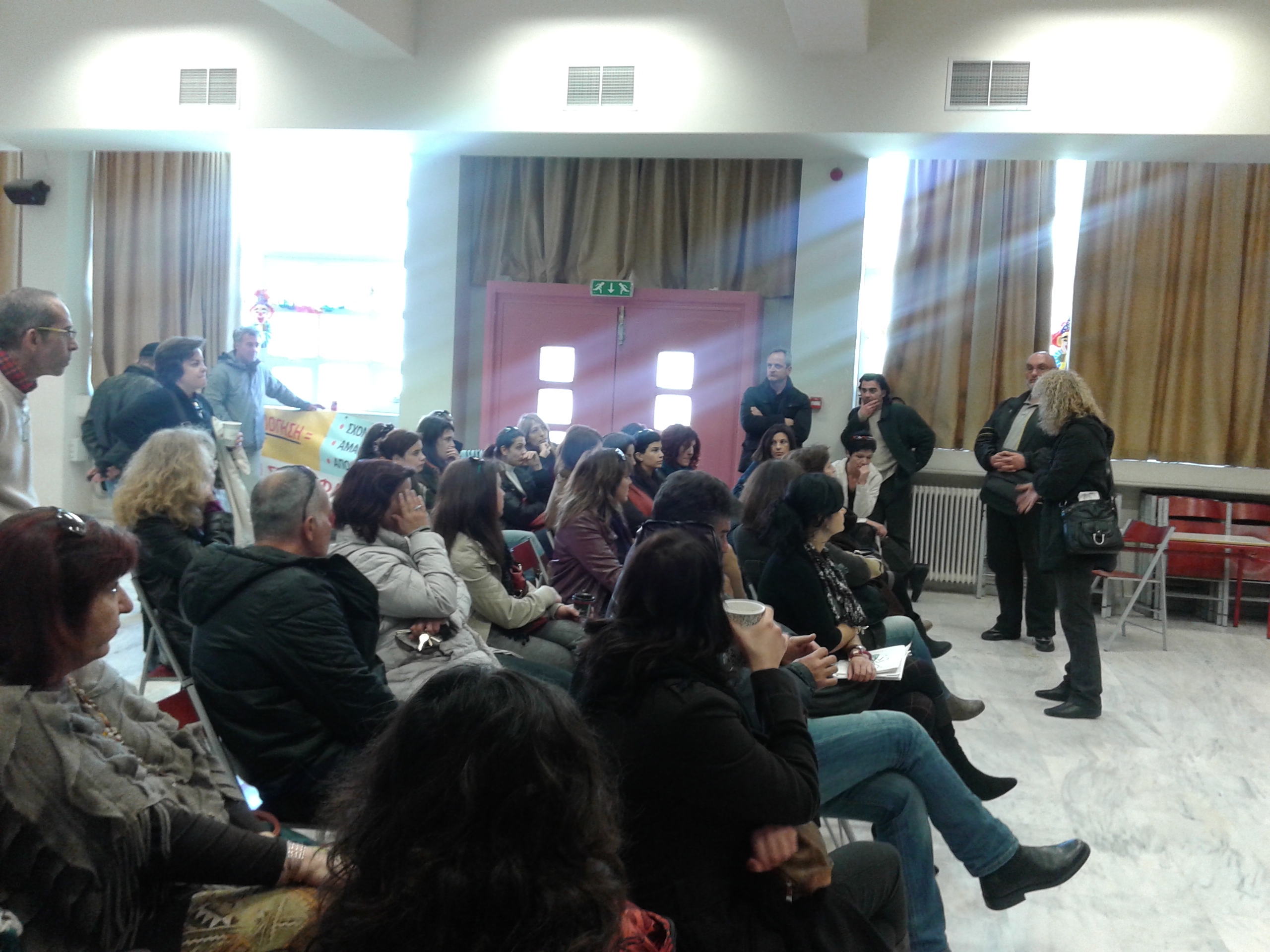 Νωρίς το πρωί συνάδελφοι και από τους τρεις συλλόγους της Διεύθυνσης Β΄ Αθήνας, με τη συμμετοχή μέλους του Δ.Σ .της ΔΟΕ, πραγματοποίησαν συγκέντρωση διαμαρτυρίας στο 14ο Δημ.Σχολείο Χαλανδρίου, όπου η συμμετοχή στη στάση εργασίας ήταν σχεδόν καθολική. Τα μέλη των συλλόγων πέρασαν και από άλλες σχολικές μονάδες που έχει προγραμματίσει η Σχολική Σύμβουλος να επισκεφθεί. Καθολικά οι συνάδελφοι δήλωσαν ότι θα συμμετάσχουν στις στάσεις εργασίας και ότι δεν θα συστήσουν ομάδες εργασίας. Η Σχολική Σύμβουλος με πρωινή ανακοίνωσή της ανέβαλε την προγραμματισμένη επίσκεψή της και στις δύο σχολικές μονάδες.