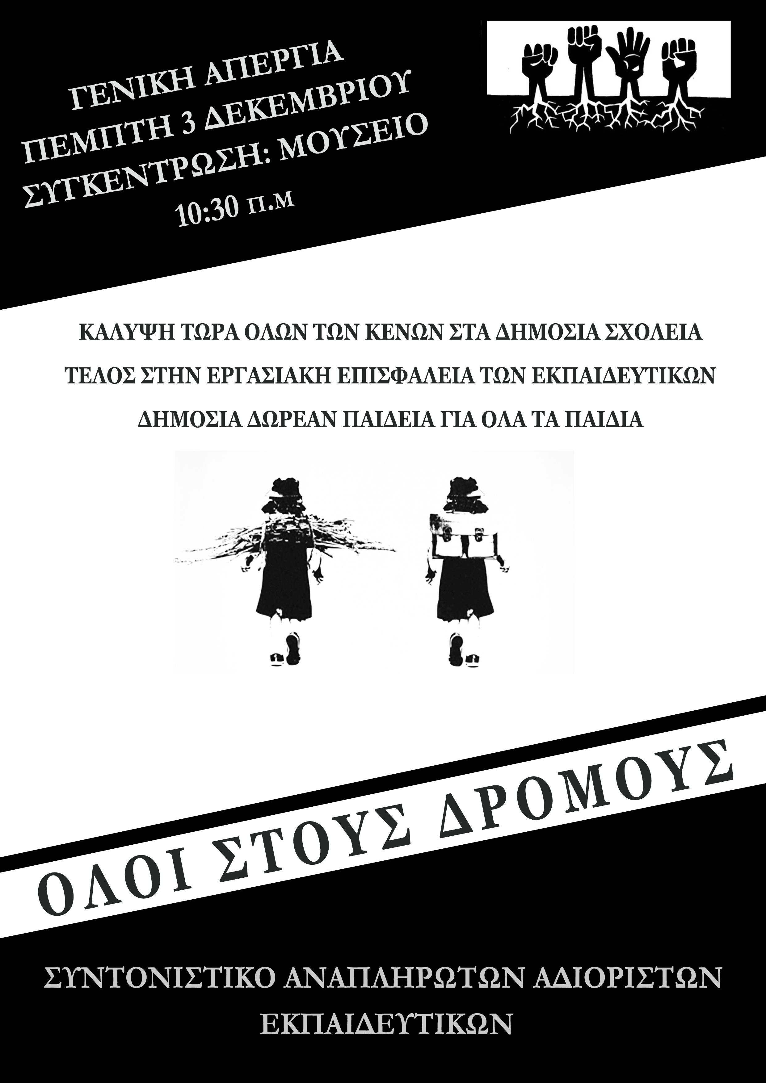 συμμετέχουμε με το μπλοκ του Συντονιστικού Αναπληρωτών – Αδιόριστων Εκπαιδευτικών στη Γενική Πανελλαδική Απεργία