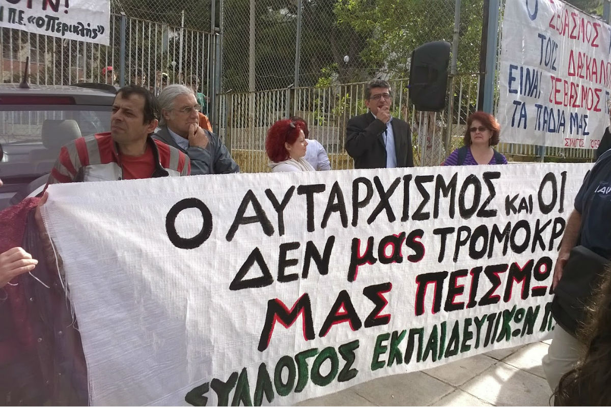 Τα φαινόμενα του αυταρχισμού και της καταστρατήγησης στοιχειωδών ελευθεριών και δικαιωμάτων ταλαιπωρούν ολόκληρη την ελληνική κοινωνία. Το Δημόσιο Σχολείο δεν θα ήταν δυνατόν να μείνει ανέγγιχτο ούτε σε αυτόν τον τομέα. Προσπαθούν με κάθε τρόπο και κάθε μέσο να επιβάλλουν κλίμα φόβου και τρομοκράτησης των εκπαιδευτικών. Θέλουν τον δάσκαλο άβουλο, χειραγωγημένο, φιμωμένο και υποταγμένο. Θέλουν το σχολείο παραγωγό μαθητών αμόρφωτων, ακαλλιέργητων, χωρίς ανεπτυγμένη κριτική σκέψη, αυριανών αναλώσιμων, ελαστικών απασχολούμενων.