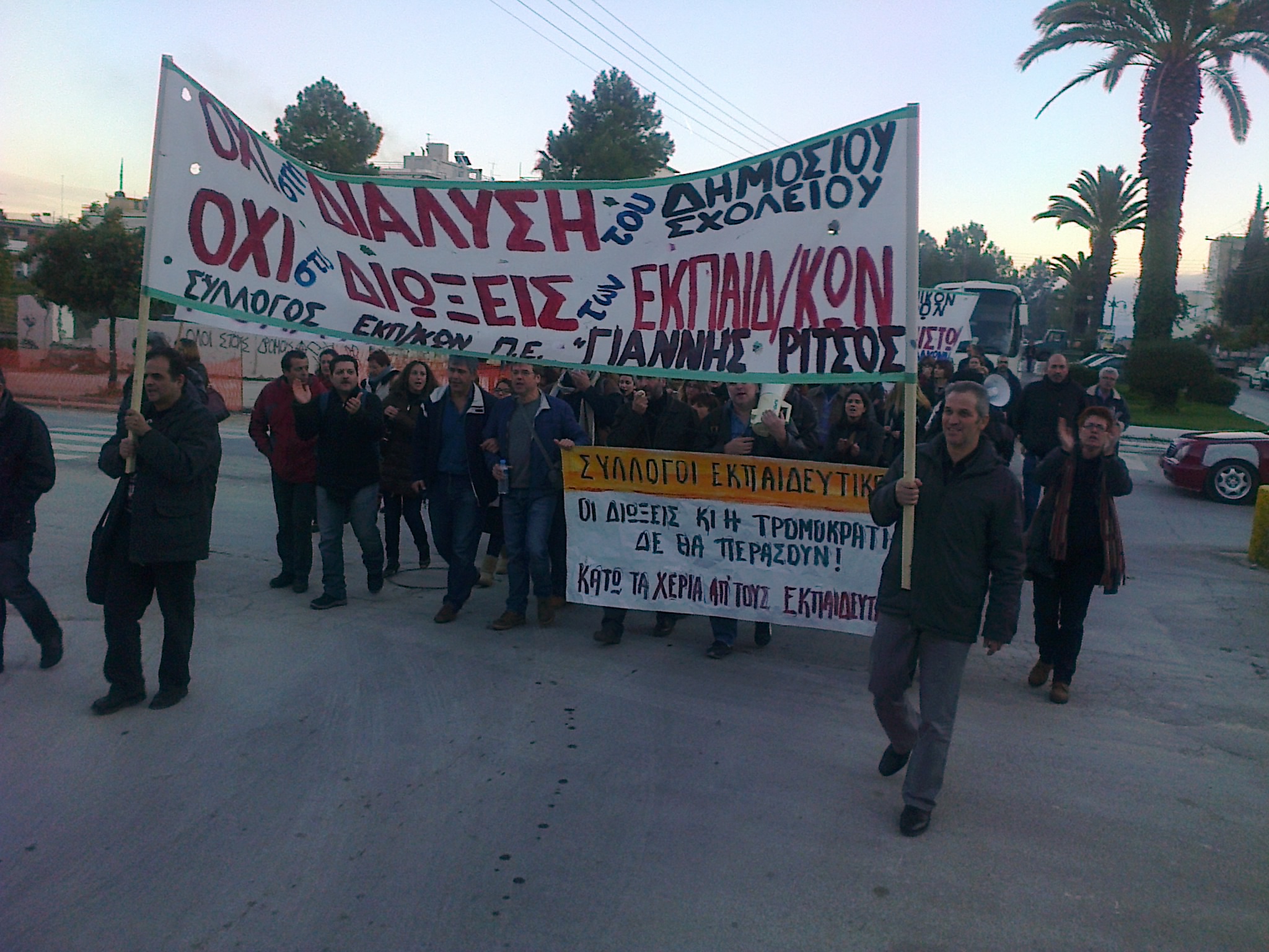 Με αφορμή την εκδίκαση, την Τρίτη 27/5/2014 στην Τρίπολη, στο Πρωτοβάθμιο Πειθαρχικό Συμβούλιο της Περιφερειακής Διεύθυνσης Π.Ε. & Δ.Ε. Πελοποννήσου, της πειθαρχικής δίωξης, της υπόθεσης της συναδέλφισσας Ελισάβετ Παπαδοπούλου, το Δ.Σ. της Δ.Ο.Ε. καλεί όλους τους εκπαιδευτικούς να συμμετάσχουν στην αγωνιστική κινητοποίηση που διοργανώνεται έξω από τα Γραφεία της Περιφερειακής Διεύθυνσης, δηλώνοντας με την παρουσία τους ότι αυτή η δίωξή αποτελεί δίωξη εναντίον του συνόλου των εκπαιδευτικών και εναντίον της ελευθερίας της συνδικαλιστικής δράσης.