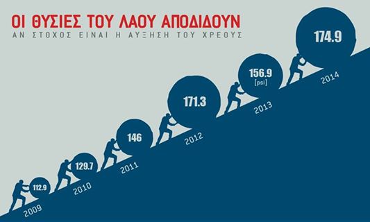 Το δημόσιο χρέος δεν είναι η αιτία αλλά το αποτέλεσμα. Το αποτέλεσμα ενός φαινομένου που λέγεται παγκόσμια καπιταλιστική κρίση. Η απάντηση της οικονομικής ολιγαρχίας στην κρίση, είναι οι πολιτικές που περιγράψαμε παραπάνω. Στόχος τους δεν είναι να μειώσουν το χρέος, άλλωστε όλοι γνωρίζουν ότι το μέγεθος του χρέους απογειώνεται. Από το φθινόπωρο του 2009 σε είχαμε προειδοποιήσει ότι η κυβέρνηση Παπανδρέου οδηγεί σε καθεστώς επιτήρησης και από το 2011 σου είχαμε επισημάνει ότι με τα μνημόνια το δημόσιο χρέος θα αυξηθεί. Στόχος τους είμαστε όλοι εμείς : η κοινωνική πλειοψηφία. Τα δικαιώματά μας, οι μισθοί, οι συντάξεις, η δημόσια παιδεία και υγεία. Γιατί μόνο έτσι θα βγουν από την κρίση και θα δουν τα κέρδη τους να αυξάνονται ξανά.