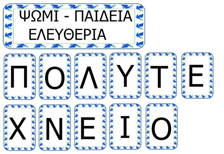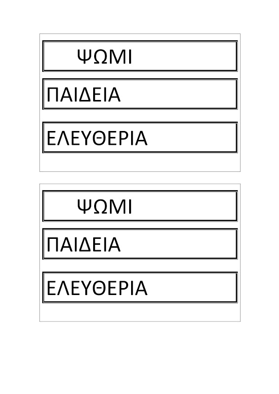 Οι καρτέλες που ακολουθούν μπορούν να χρησιμεύσουν ως παιχνίδι ανάγνωσης