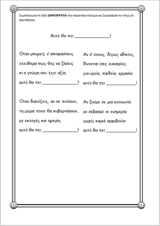 - Ελεύθερη ατομική ζωγραφική με θέμα: Η “Δημοκρατία” σήμερα…