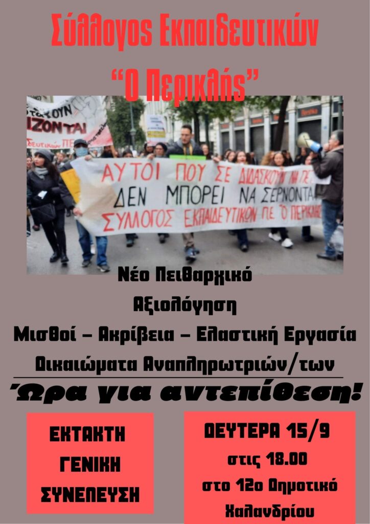 ΟΛΕΣ και ΟΛΟΙ στην έκτακτη Γ.Σ. τη Δευτέρα 15 Σεπτεμβρίου στις 18.00 μ.μ. στο 12ο Δημοτικό Σχολείο Χαλανδρίου
