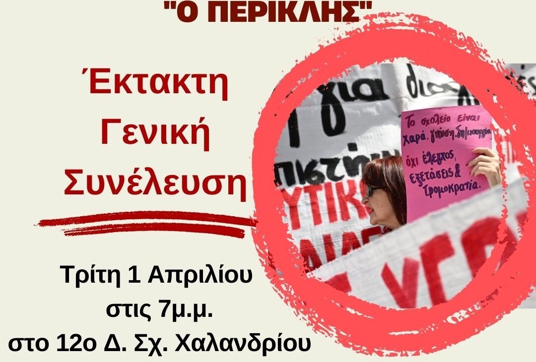 Έκτακτη ΓΣ την Τρίτη 1 Απριλίου στις 7 μ.μ. στο 12ο Δ. Σχ. Χαλανδρίου