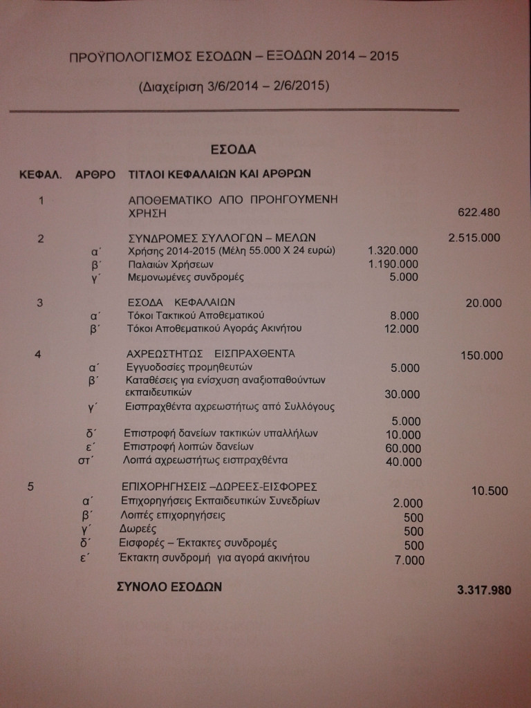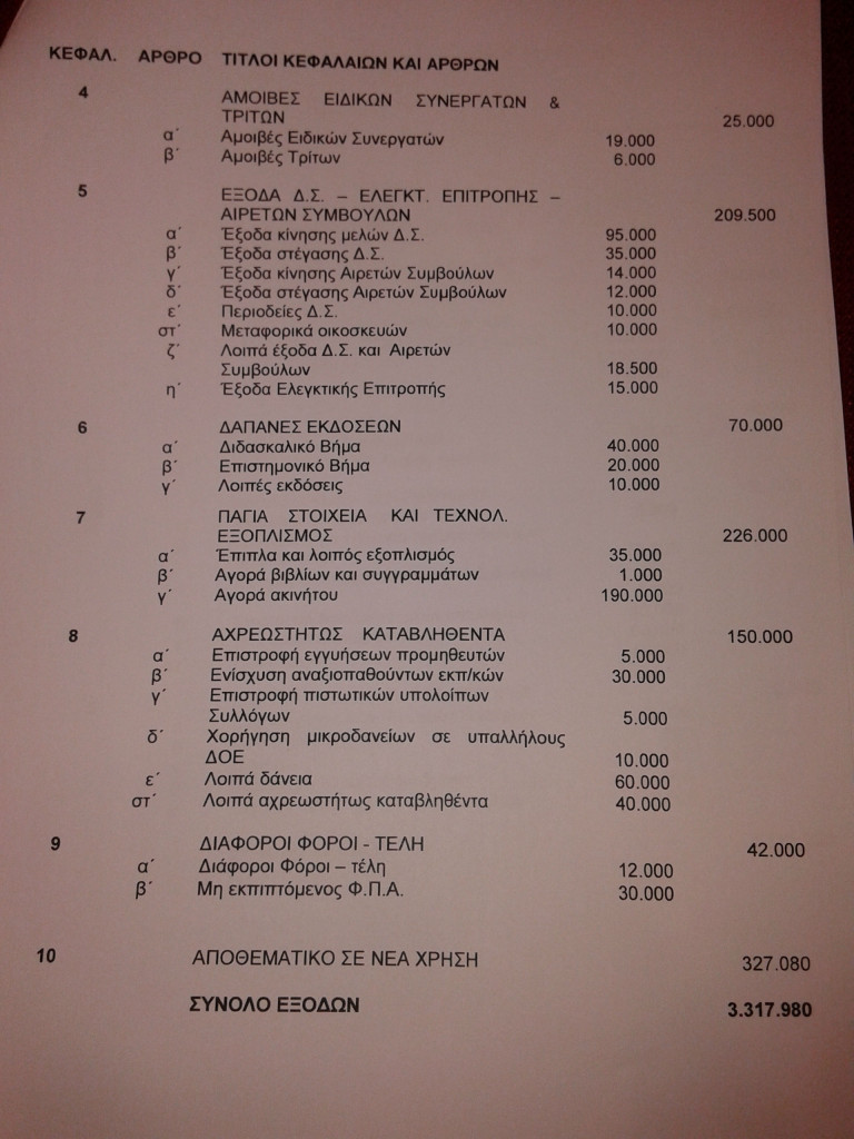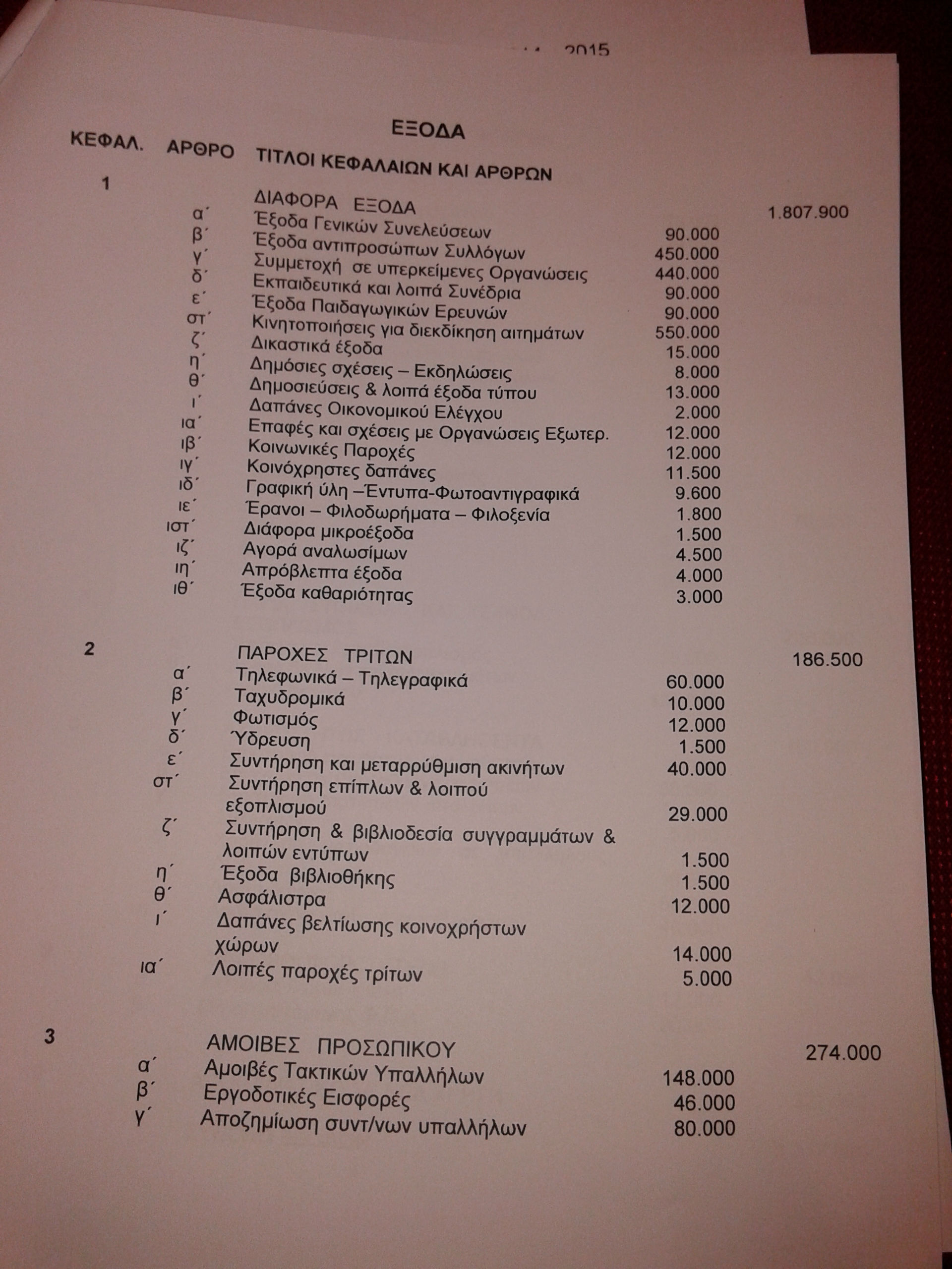 Δείτε τον προϋπολογισμό εσόδων-εξόδων όπως κατατέθηκε και ψηφίστηκε