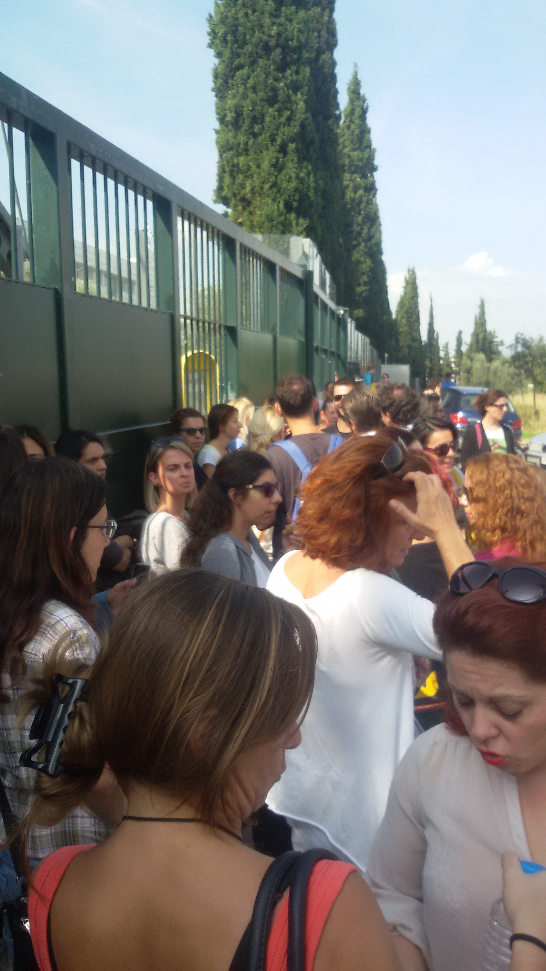 Οι “τιμώμενοι” εκπαιδευτικοί μπροστά στην κλειστή πύλη του υπουργείου Παιδείας
