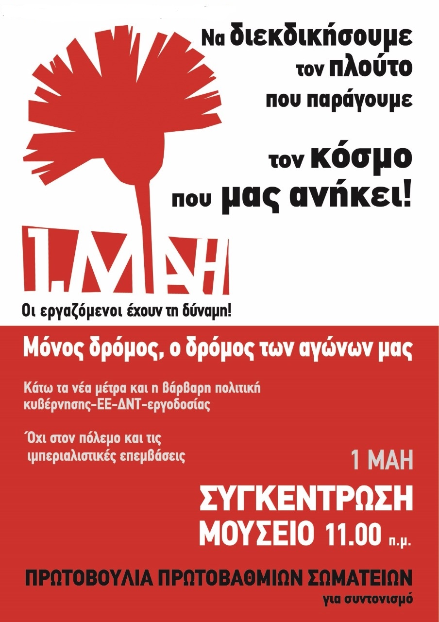 Εργατική Πρωτομαγιά, Συγκέντρωση Δευτέρα 1η Μαϊου, 11.00 Μουσείο με τα Πρωτοβάθμια Σωματεία