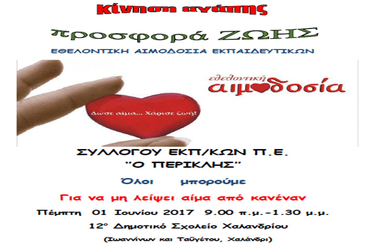 ΑΦΙΣΑ ΑΙΜΟΔΟΣΙΑΣ ΣΥΛΛΟΓΟΥ – Πέμπτη 01-06-2017