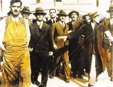Πορεία δημοσίων υπαλλήλων, Αθήνα 1927. Επιχρωματισμένη φωτογραφία (Αρχείο ΓΣΕΕ)