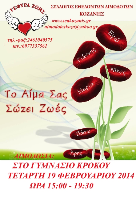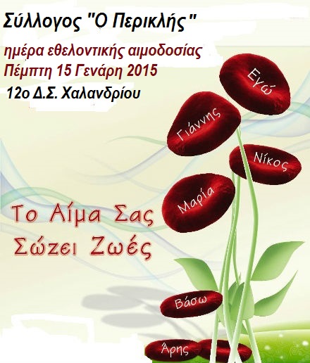 ΘΕΜΑ: Hμέρα Εθελοντικής Αιμοδοσίας, Πέμπτη 15 Ιανουαρίου 2015