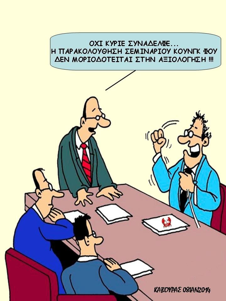 Στην Ελλάδα η . ευφροσύνη της αξιολόγησης οδηγεί σε απόλυση εκπαιδευτικού, ακόμα και γιατί αφαιρεί το σκονάκι από τους βλαστούς των πολιτικών μας ταγών που λιπαίνουν τις μηχανές του κράτους της ρεμούλας, της διαφθοράς, της κομματικοκρατίας και της φελλο- κρατίας. Σε συνθήκες «αξιολογικής δικτατορίας» το παιδαγωγικό και διδακτικό έργο των εκπαιδευτικών μετατρέπεται σε ένα στεγνό διοικητικό μηχανισμό, συμπλήρωσης αριθμών και φορμών, το σημαντικότερο είναι ότι οι «αντικειμενικές» μετρήσεις θα παράγουν ενοχοποιήσεις, κατάταξη και ανταγωνισμό. Η σχολική κοινότητα από χώρος συνεργασίας και συμβιωτικής προσπάθειας θα γίνει βαθμιαία χώρος απόκρυψης, προσωπικής προβολής και διαρκούς ανταγωνισμού.
