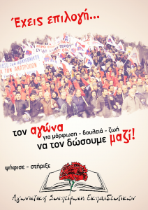 Με τη συμμετοχή σου στον αγώνα και την ψήφο σου στο ψηφοδέλτιο της Αγωνιστικής Συσπείρωσης Εκπαιδευτικών: