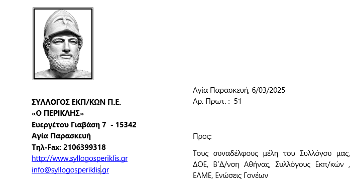 Καταγγελία για απαγόρευση εισόδου της προέδρου του συλλόγου μας σε σχολείο της περιοχής μας