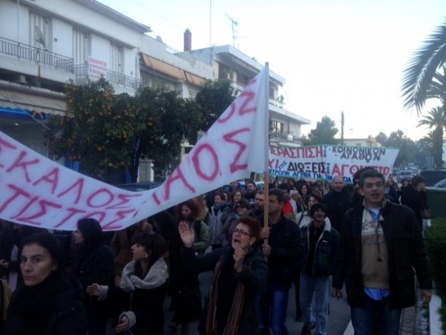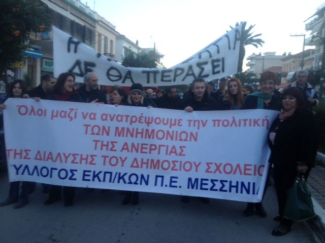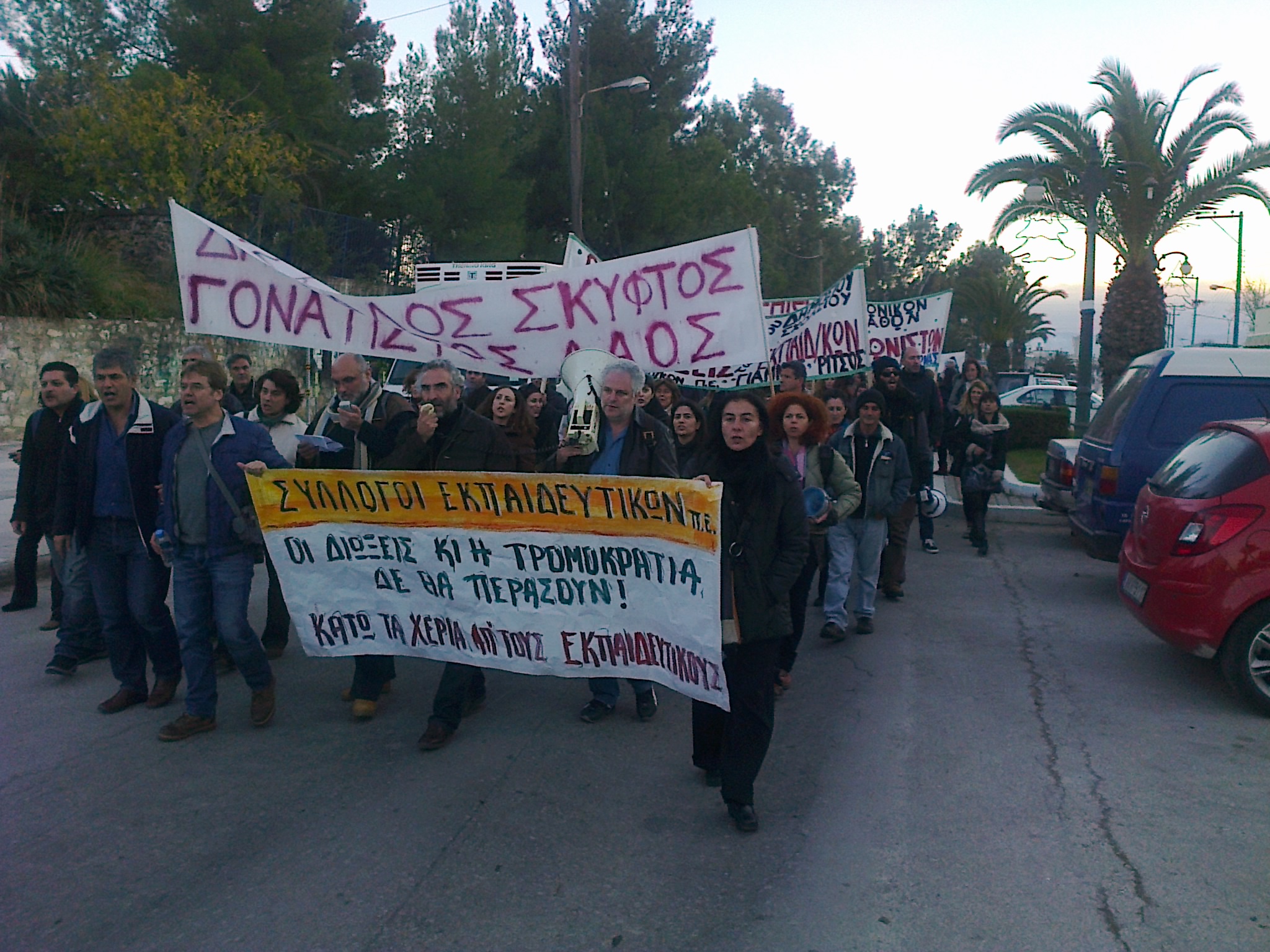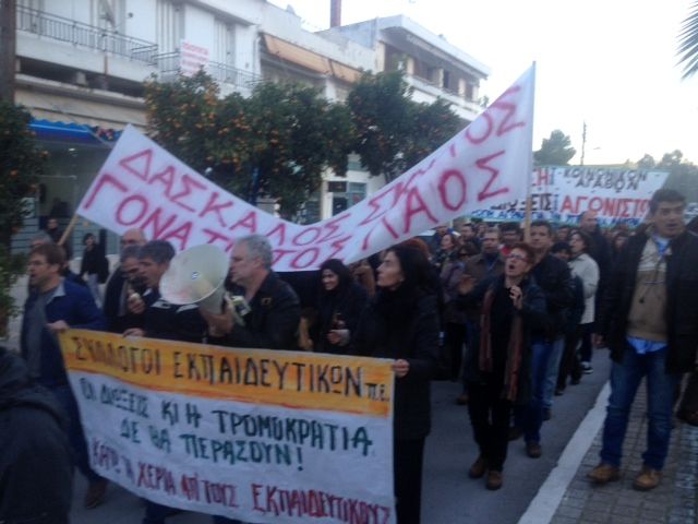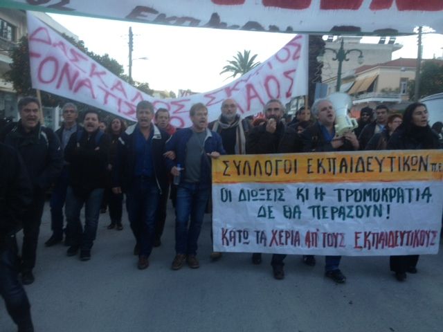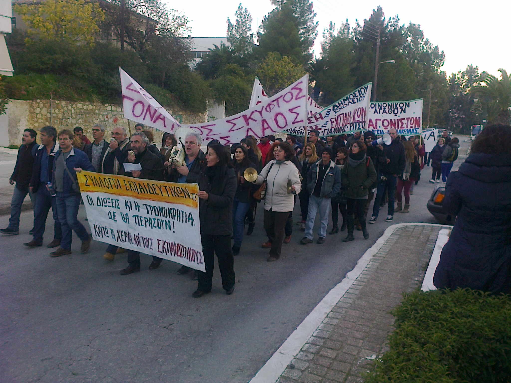 Μεγάλη η κινητοποίηση των εκπαιδευτικών στη Σπάρτη. Δάσκαλοι, Νηπιαγωγοί και Καθηγητές διαδήλωσαν ενάντια στη πρωτοφανή δίωξη της Ελισάβετ Παπαδοπούλου, αγωνίστριας δασκάλας. Στην κινητοποίηση συμμετείχαν και συνάδελφοι από συλλόγους Π.Ε της Αττικής, πού είχαν κηρύξει στάση εργασίας. Ανάμεσα τους και ο Σύλλογος μας “Περικλής”