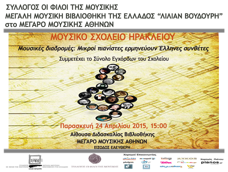 Σας προσκαλούμε με χαρά στη συναυλία που θα κάνουμε στις 24 Απριλίου και ώρα 3 το μεσημέρι στην Αίθουσα Διδασκαλίας της Μουσικής Βιβλιοθήκης στο Μέγαρο Μουσικής Αθηνών.