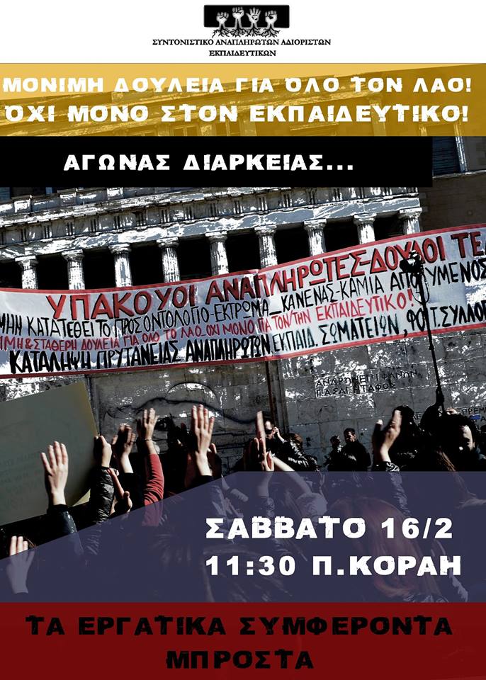 Σάββατο 16/2, 11:30, πλ. Κοραή, συγκέντρωση και πορεία στη Βουλή