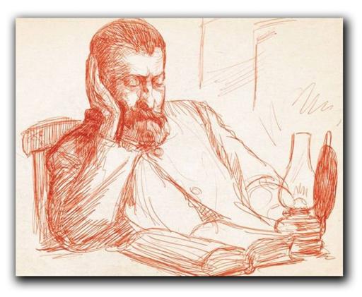 Όταν εμειδία ο μπάρμπα-Πύπης, δεν εμειδίων μόνον αι γωνίαι των χειλέων, αι παρειαί και τα ούλα των οδόντων του, αλλ’ εμειδίων οι ιλαροί και ήμεροι οφθαλμοί του, εμειδία στίλβουσα η σιμή και πεπλατυσμένη ρις του, ο μύσταξ του ο ευθυσμένος με λεβάνταν και ως διά κολλητού κηρού λελεπτυσμένος, και το υπογένειόν του το λευκόν και επιμελώς διατηρούμενον, και σχεδόν ο κούκος του ο στακτερός, ο λοξός κ’ επικληνής προς το ους, όλα παρ’ αυτώ εμειδίων.