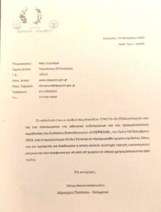 Δείτε την απαράδεκτη απάντηση του δημάρχου Παπάγου – Χολαργού στο αίτημα του Συλλόγου μας: