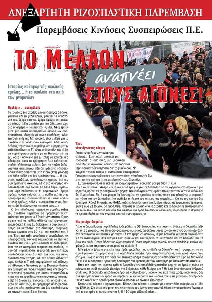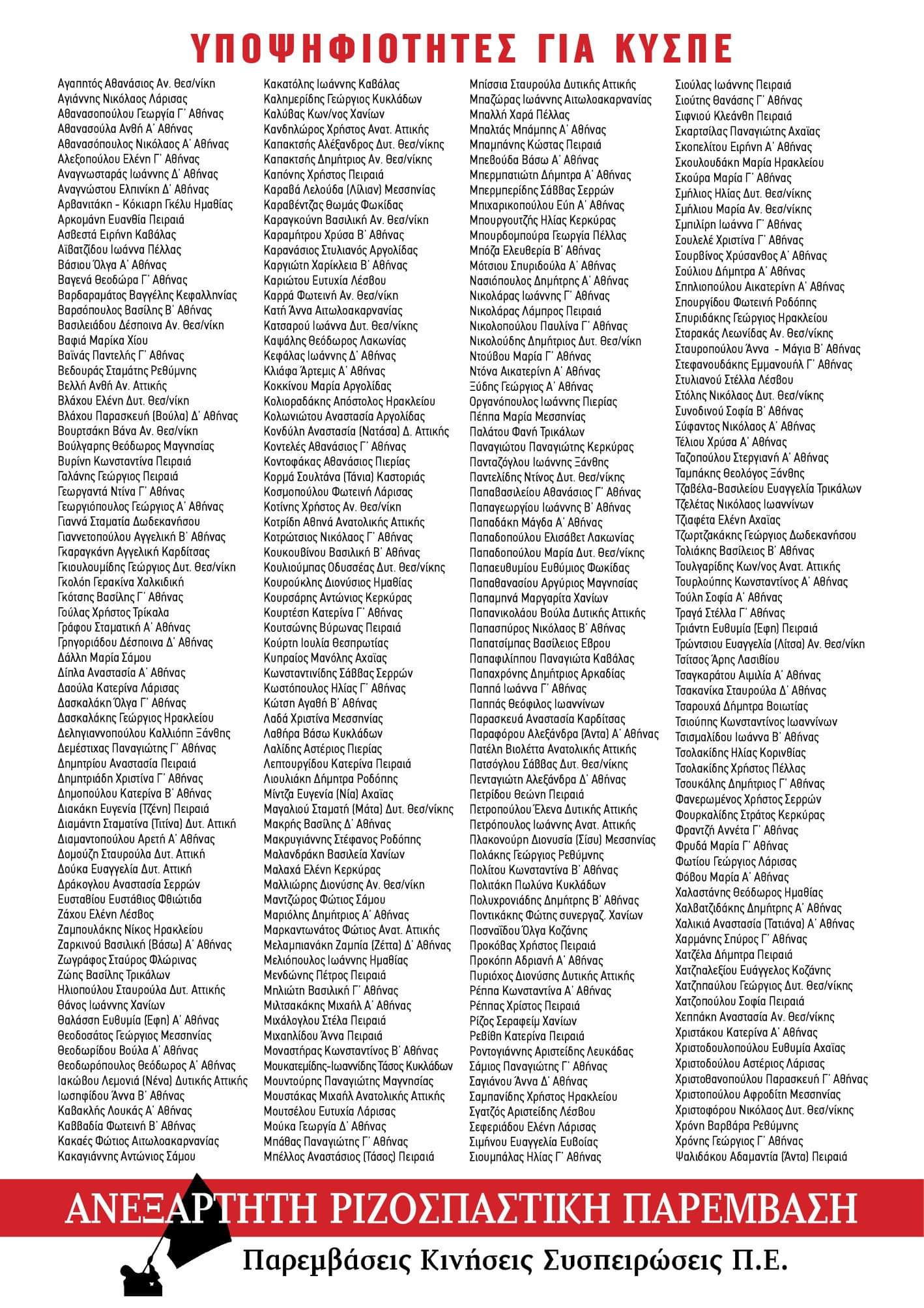 Για ΑΠΥΣΠΕ-ΚΥΣΠΕ ψηφίζουμε ΑΝΕΞΑΡΤΗΤΗ ΡΙΖΟΣΠΑΣΤΙΚΗ ΠΑΡΕΜΒΑΣΗ (ΠΑΡΕΜΒΑΣΕΙΣ ΚΙΝΗΣΕΙΣ ΣΥΣΠΕΙΡΩΣΕΙΣ)
