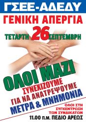 ¼λοι μαζß μποροýμε να τους σταματÞσουμε. Την Τρßτη 25/9, στις 7:00 μ.μ. στο 12ο Δημοτικü Σχολεßο Χαλανδρßου (…) σας καλοýμε σε Ýκτακτη ΓενικÞ ΣυνÝλευση για να συζητÞσουμε την κατÜσταση. Την ΤετÜρτη 26/9 ας κλεßσουμε üλα τα σχολεßα, δημοτικÜ και νηπιαγωγεßα, για να δþσουμε μια μαζικÞ και δυναμικÞ απÜντηση σε αυτοýς που μας σπρþχνουν ολοÝνα και περισσüτερο στην καταστροφÞ. ΣΥΓΚΕΝΤΡΩΣΗ ΣΤΙΣ 26/9, ΣΤΙΣ 11:00 στο ΠΟΛΥΤΕΧΝΕΙΟ
