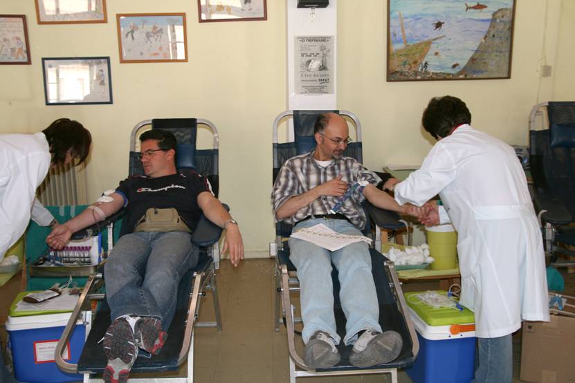 Στις 13 Μαΐου 2008 ο Σύλλογός μας διοργάνωσε την πρώτη μέσα στο σχολικό έτος εθελοντική αιμοδοσία. Ξεκίνησε στις 09:00 το πρωί και τελείωσε στις 13:30 το μεσημέρι και προσήλθαν σε αυτή 56 μέλη μας και έδωσαν αίμα. Η προηγούμενη εθελοντική αιμοδοσία είχε γίνει τη 13η Νοεμβρίου 2007 και σε αυτήν συμμετείχαν και έδωσαν αίμα 45 μέλη μας. Τα Διοικητικό Συμβούλιο αισθάνεται την ανάγκη να ευχαριστήσει όλους τους συναδέλφους και τις συναδέλφισσες που προσήλθαν στην αιμοδοσία, αλλά και αυτούς που βοήθησαν με οποιοδήποτε τρόπο στην επιτυχία της, Ισχυρή τράπεζα αίματος σημαίνει προσφορά και ασφάλεια σε όλους μας. Πιο κάτω μπορείτε να δείτε φωτογραφίες από την αιμοδοσία. |