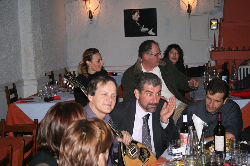 Ο μεγάλος συνθέτης Χρ. Νικολόπουλος μόλις έχει τελείωσει το πρόγραμμά του και συνομιλεί φιλικά μαζί μας