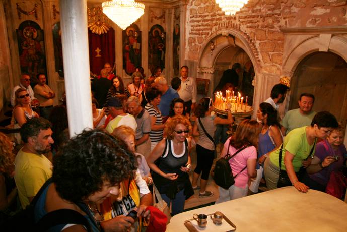 Απ' εκεί πτήση για Κωνσταντινούπολη. Άφιξη και ξεκινάμε με περιήγηση στα Χερσαία τείχη της Πόλης. Βλέπουμε την Χρυσή Πύλη, το Επταπύργιο και φτάνουμε στη συνοικία Φανάρι (Fener) για προσκύνημα στο Οικουμενικό Πατριαρχείο. Εκεί μπήκαμε στο ιερό ναό του Αγίου Γεωργίου που ήταν ανοιχτός. Επίσης είδαμε και το χώρο όπου ετοιμάζεται κάθε δέκα χρόνια το Άγιο Μύρο. Από μακριά είδαμε το πανέμορφο κτίριο της Μεγάλης του Γένους Σχολής, χωρίς να το επισκεφτούμε. Στην συνέχεια επισκεφθήκαμε και προσκυνήσαμε τη μονή της Παναγίας των Βλαχερνών. Μετά την Παναγία των Βλαχερνών συνεχίσαμε για την πλατεία Ταξίμ, όπου μας δόθηκε ο απαιτούμενος χρόνος για βόλτα και φαγητό. Ακολούθως κατευθυνθήκαμε για το ξενοδοχείο (Hotel Tilia), πήραμε τα δωμάτιά μας, ξεκουραστήκαμε λίγο και ξεκινήσαμε για την κρουαζιέρα στο Βόσπορο κατά τη διάρκεια της οποίας είχαμε την ευκαιρία, ξεκινώντας από την ακτή της Ευρωπαϊκής Κωνσταντινούπολης και επιστρέφοντας από την Ασιατική ακτή, να απολαύσουμε τα πιο ωραία ξύλινα yali (παραθαλάσσιες επαύλεις) της Κωνσταντινοπολίτικης ελίτ, τον Πύργο του Γαλατά, την πρώτη και δεύτερη κρεμαστή γέφυρα του Βοσπόρου και το πιο όμορφο ηλιοβασίλεμα. Διανυκτέρευση. 2η ΜΕΡΑ: ΜΠΑΛΟΙΚΛΙ-ΔΕΡΜΑΤΙΝΑ-ΜΟΝΗ ΤΗΣ ΧΩΡΑ- ΑΙΓΥΠΤΙΑΚΗ ΑΓΟΡΑ- ΚΛΕΙΣΤΗ ΑΓΟΡΑ (ΚΑΠΑΡΛΙ ΤΣΑΡΣΙ) Πρωινό και ακολουθεί επίσκεψη στη μονή της Ζωοδόχου Πηγής, Μπαλουκλί ή Παναγία η Μπαλουκλιώτισσα, όπου υπάρχει το θαυμαστό Αγίασμα, οι τάφοι των Πατριαρχών και η στέρνα με τα παραδοσιακά ψάρια. Ακολούθως επισκεφθήκαμε ένα μεγάλο πολυκατάστημα - εργοστασίου κατασκευής δερμάτινων ειδών, όπου έγινε επίδειξη και πολλοί από μας έκαναν τα ψώνια τους. Συνεχίσαμε για τη Μονή της Χώρας (Καριγιέ Τζαμί) με τα θαυμάσια ψηφιδωτά της. Μετά τη Μονή της Χώρας Πήγαμε στην Αιγυπτιακή Αγορά όπου βρίσκεις κάθε είδους μπαχαρικό και καταλήξαμε στην Μεγάλη κλειστή αγορά (Καπαλί Τσαρσί) με τα 4.216 καταστήματα. Το βράδυ διασκέδαση με ποτό και φαγητό σε κέντρο με ανατολίτικους χορούς και χανουμάκια. Διανυκτέρευση.