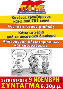 Απαντάμε συμμετέχοντας μαζικά στο παναττικό συλλαλητήριο των συνδικάτων την Πέμπτη 9 Νοέμβρη, στο Σύνταγμα στις 6.30 μ.μ. απαιτώντας: |
