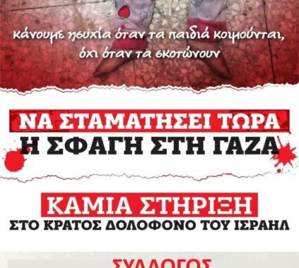 Να σταματήσει τώρα η σφαγή του Παλαιστινιακού Λαού