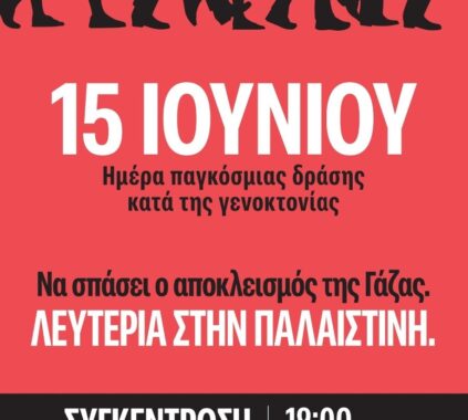 Όλοι και Όλες το Σάββατο 31/5 στις 11 πμ στο πάρκο ελευθερίας και πορεία στην Ισραηλινή πρεσβεία.