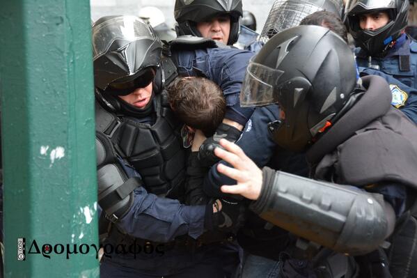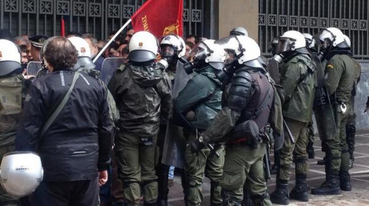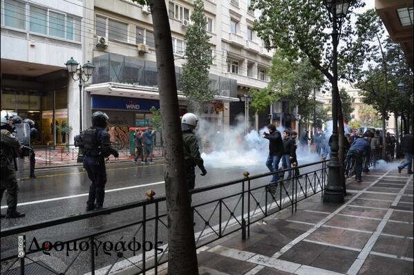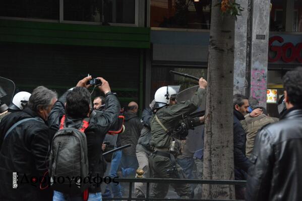 Το πρωί, αστυνομικοί των ΜΑΤ και της ομάδας ΔΕΛΤΑ επιτέθηκαν σε διαδηλωτές του ΠΑΜΕ κατά την κινητοποίηση που πραγματοποίησαν τα Συνδικάτα Οικοδόμων Αθήνας, Κλωστοϋφαντουργίας, Ιματισμού και Δέρματος, Μετάλλου Αττικής, τα Σωματεία στη Ναυπηγοεπισκευαστική Ζώνη, η Πανελλαδική Ένωση Λιθογράφων και η Ένωση Ηλεκτροτεχνιτών Αττικής τραυματίζοντας μεταξύ άλλων και τον ευρωβουλευτή του ΚΚΕ, Μπ. Αγγουράκη. Ισχυρές αστυνομικές δυνάμεις των ΜΑΤ, ΔΕΛΤΑ, και ΥΜΕΤ απομόνωσαν ομάδα διαδηλωτών μετά την οδό Κολοκοτρώνη και στους γύρω δρόμους, ξυλοκοπώντας τους και ρίχνοντας χημικά. Από την επίθεση δεν γλίτωσαν ούτε ο ευρωβουλευτής του ΚΚΕ Μπάμπης Αγγουράκης, φωτογράφοι και δημοσιογράφοι.