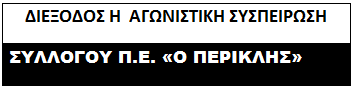 | ΣΥΛΛΟΓΟΣ ΕΚΠ/KΩΝ Π.Ε. «Ο ΠΕΡΙΚΛΗΣ»Γιαβάση 7 -15242 Αγία Παρασκευή Τηλ-Fax: 2106399318http://www.syllogosperiklis.gr info@syllogosperiklis.gr |