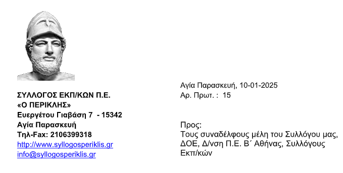 ΨΗΦΙΣΜΑ ΣΥΜΠΑΡΑΣΤΑΣΗΣ ΓΙΑ ΤΗ ΣΥΝΑΔΕΛΦΙΣΣΑ ΜΑΣ – ΣΥΛΛΟΓΟΣ ΕΚΠΑΙΔΕΥΤΙΚΩΝ Π.Ε. “Ο ΠΕΡΙΚΛΗΣ”