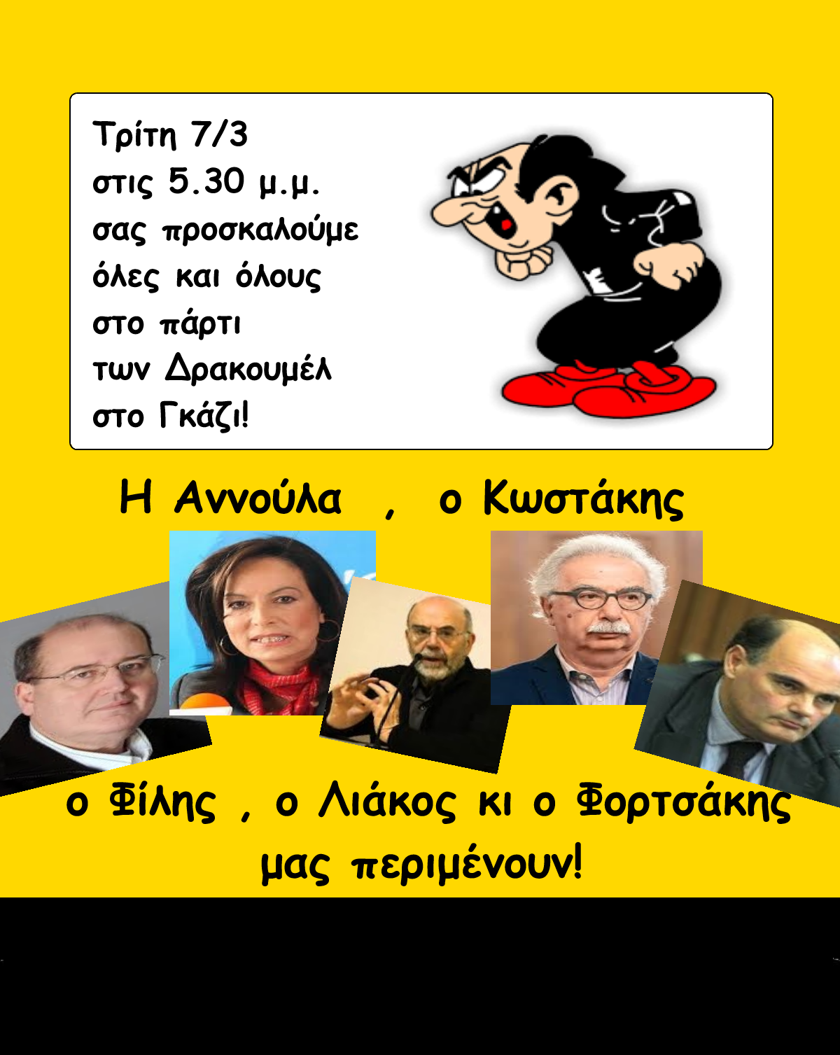 - τον υπεύθυνο του τομέα Παιδείας της ΝΔ κ. Θ. Φορτσάκηκαι πρώην πρύτανη του ΕΚΠΑ ο γνωστός πρύτανης των ΜΑΤ που κλείδωνε το πανεπιστήμιο και καλούσε τα ΜΑΤ για να μην πραγματοποιηθεί διαμαρτυρία και ήταν αρωγός της προσπάθειας για απολύσεις των διοικητικών των ΑΕΙ