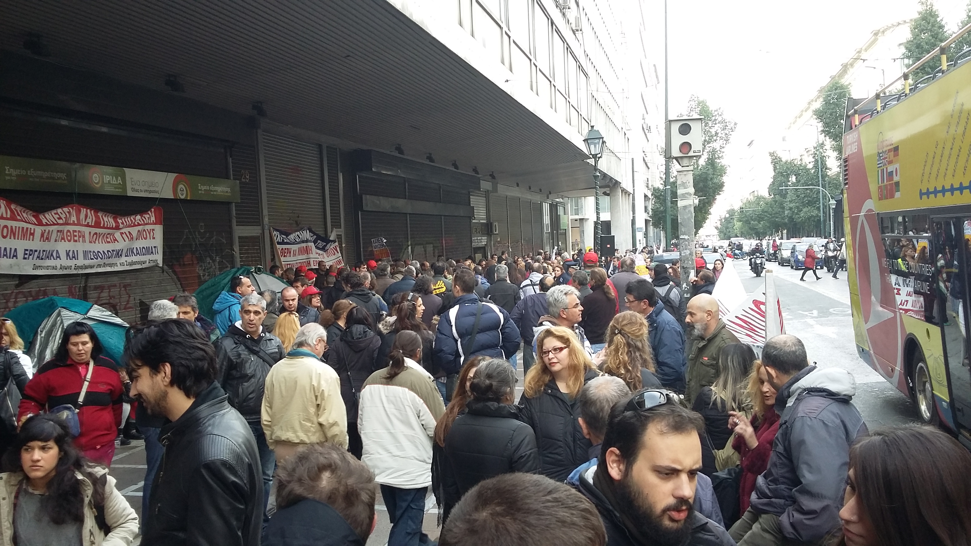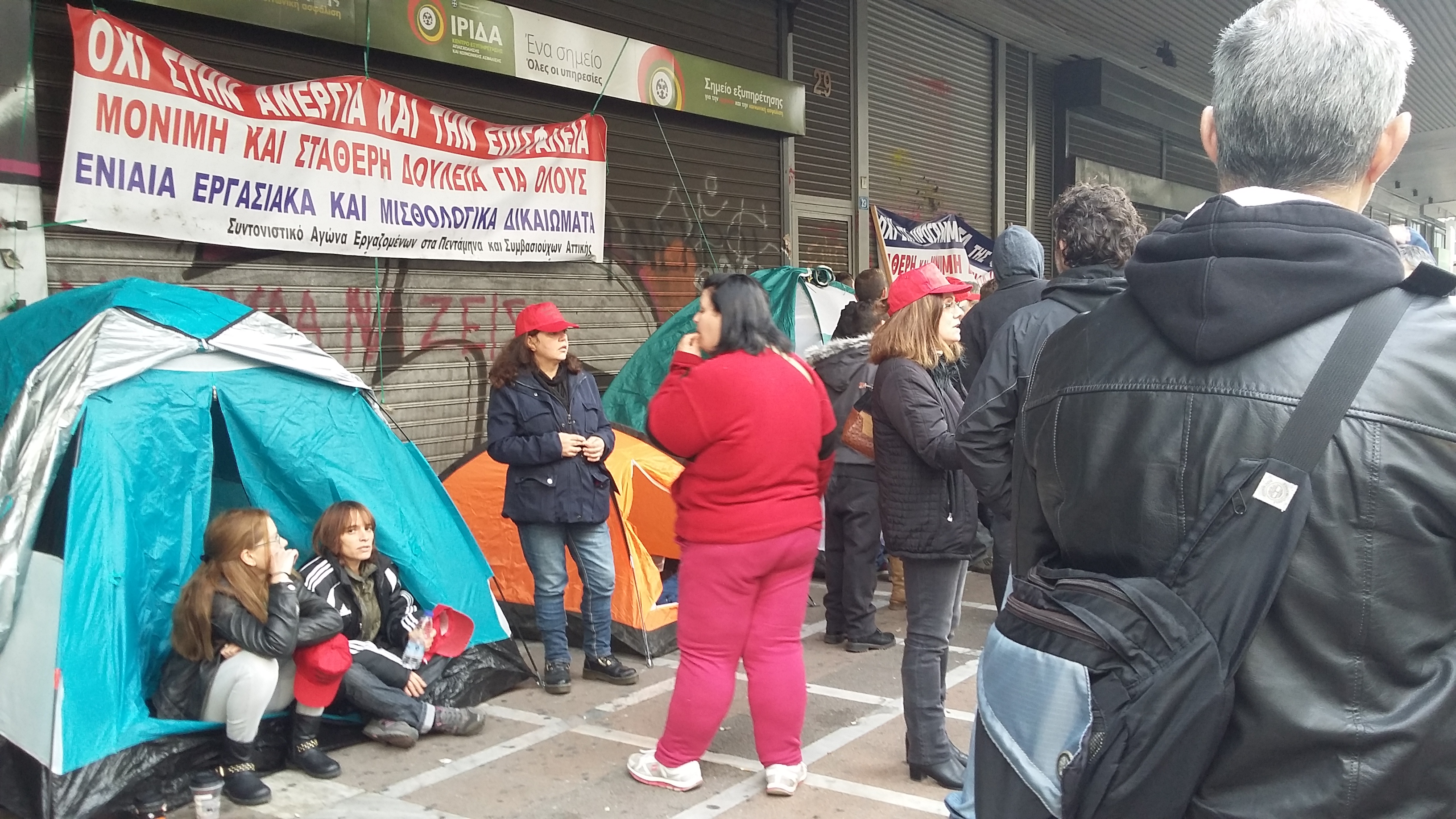 Σκηνές έξω από το υπ. Εργασίας έστησαν οι εργαζόμενοι στα πεντάμηνα – «Θα μείνουμε όσο χρειαστεί»(fotos)