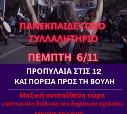 Το Δ.Σ. του Συλλόγου μας καλεί στην κινητοποίηση που διοργανώνει η Πανελλήνια Ένωση Συνταξιούχων Εκπαιδευτικών στο Υπουργείο Οικονομικών, την Τετάρτη 12/11 και ώρα 13:30 για :