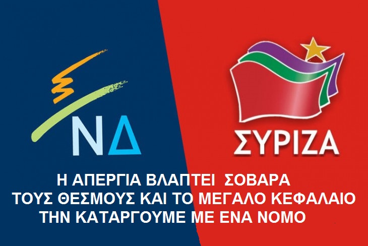 Δεν είναι τυχαίο ότι η Ν.Δ. καλεί την κυβέρνηση ΣΥΡΙΖΑ να ψηφίσει και να εφαρμόσει τον απεργοκτόνο νόμο κατηγορώντας την κυβέρνηση για ατολμία!