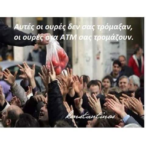 Με πρώτο το “Πρώτο Θέμα” και ύστερα και άλλα site όπως το iefimerida.gr, άρχισαν μετά το διάγγελμα να τρομοκρατούν τον κόσμο , ανεβάζοντας φωτογραφίες από γεμάτα με κόσμο ΑΤΜ χρησιμοποιώντας πομπώδεις ‘”post apocalyptic ” τίτλους όπως “Ούρες στα ΑΤΜ”, “συνωστισμός στα ΑΤΜ” και άλλα