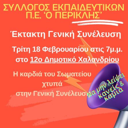 Έκτακτη Γενική Συνέλευση 29 Οκτωβρίου στις 7μμ στο 12ο ΔΣ Χαλανδρίου