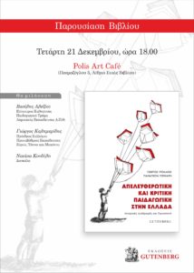 Τετάρτη 21 Δεκεμβρίου: Πρόσκληση στην παρουσίαση του βιβλίου “Απελευθερωτική και Κριτική Παιδαγωγική στην Ελλάδα” Γ. Γρόλλιος, Π. Γούναρη