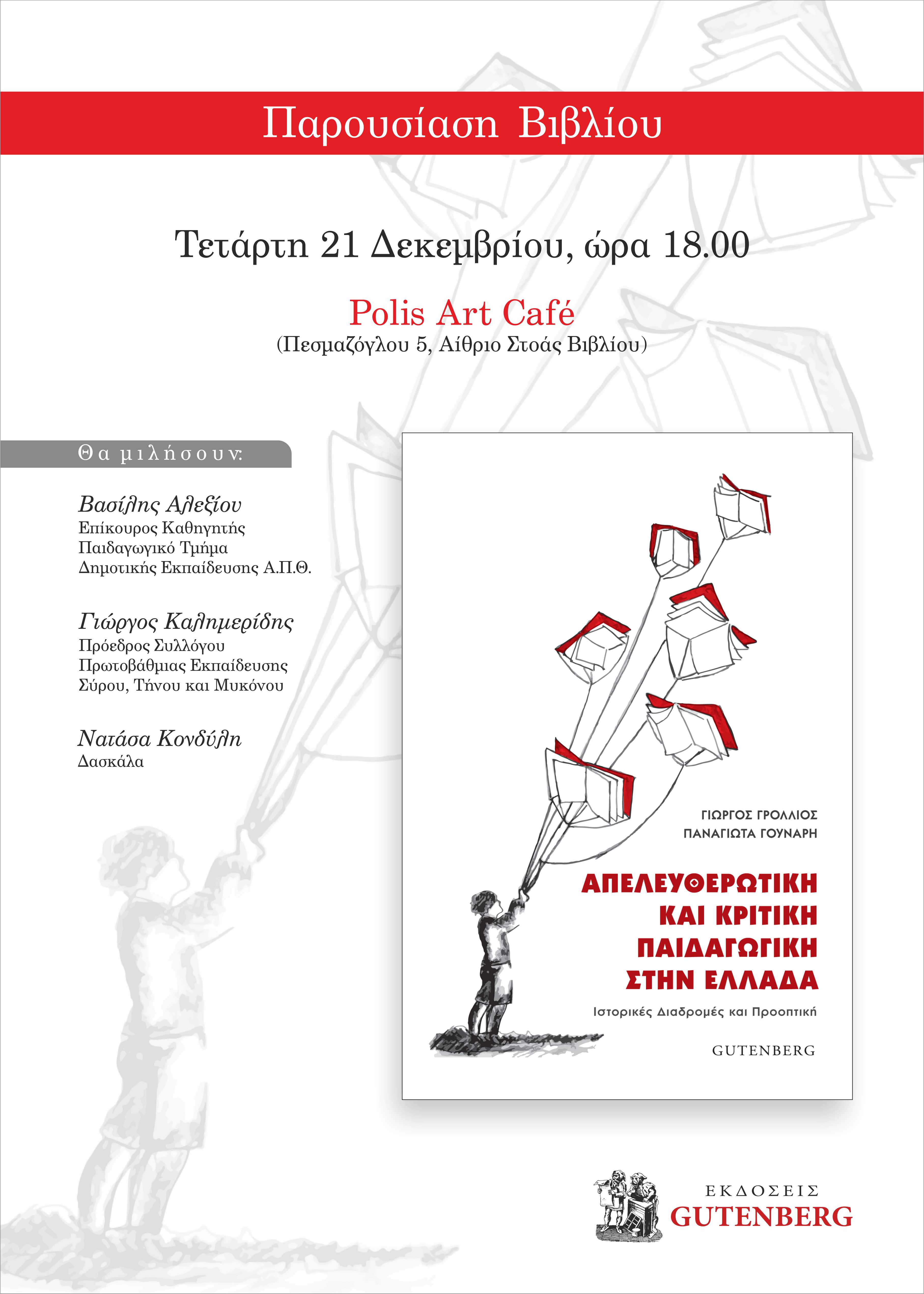 Τετάρτη 21 Δεκεμβρίου: Πρόσκληση στην παρουσίαση του βιβλίου “Απελευθερωτική και Κριτική Παιδαγωγική στην Ελλάδα” Γ. Γρόλλιος, Π. Γούναρη
