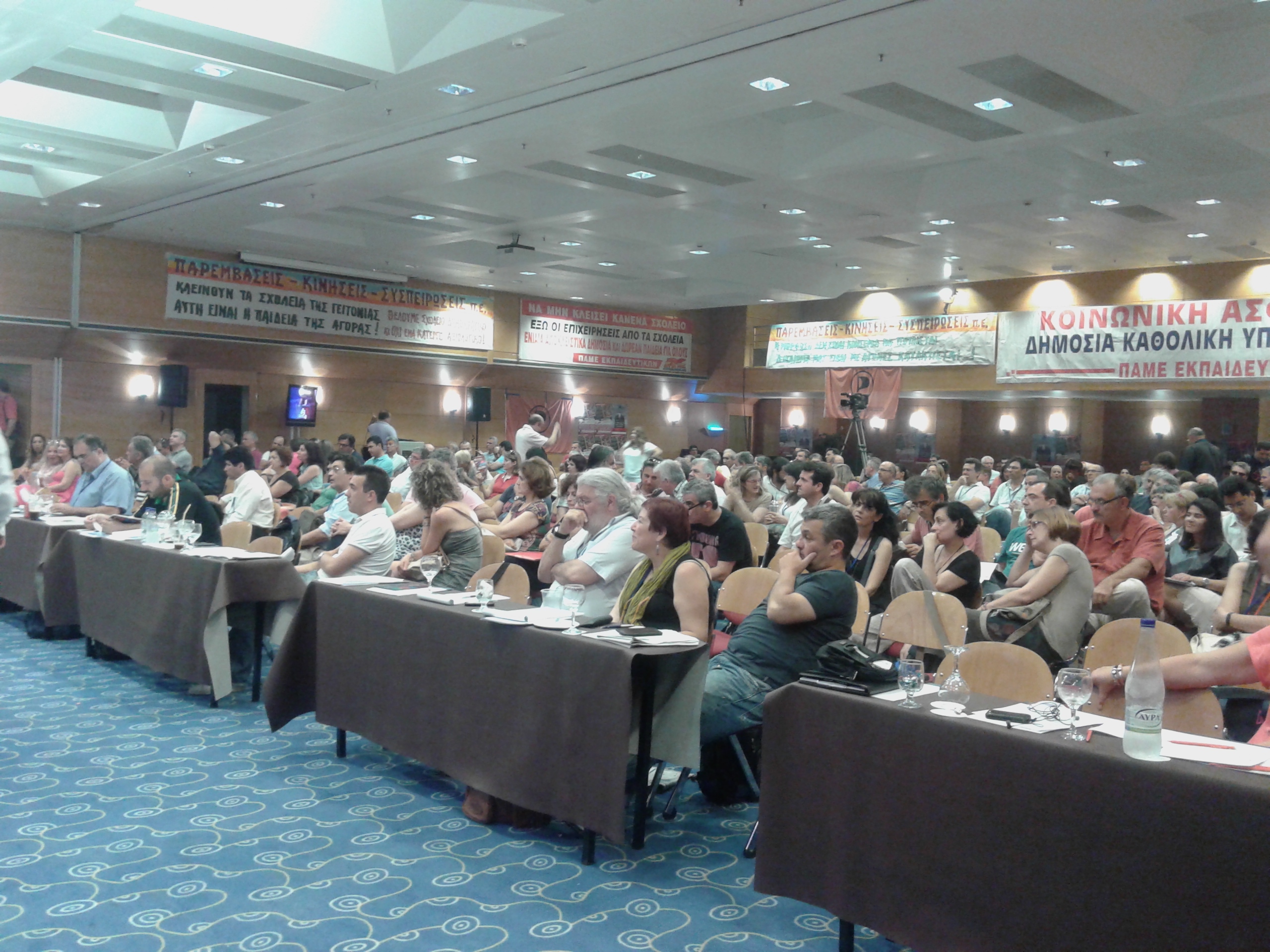 Σήμερα 22-6-2014 ξεκίνησε τις εργασίες της η 83η Γενική Συνέλευση της Διδασκαλικής Ομοσπονδίας Ελλάδος, συμμετέχουν συνολικά 599 σύνεδροι από όλους τους συλλόγους Π.Ε.